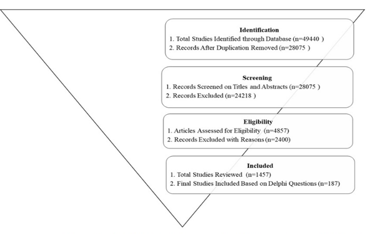 A Delphi survey method was utilized to achieve consensus amongst subject matter experts (SMEs). The entire process is layered into two stages consisting of three rounds of a modified Delphi method [24] from the time of developing questions until the finalization of the recommendations. The first stage involved formulating the clinical questions that would be used to develop the recommendations. The second stage was to develop the recommendations based on the finalized clinical