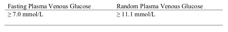 In practice, diagnosis of diabetes mellitus must be confirmed by the measurement of venous plasma glucose. Malaysian Clinical Practice Guidelines stated that the diagnosis value of diabetes is as follow: