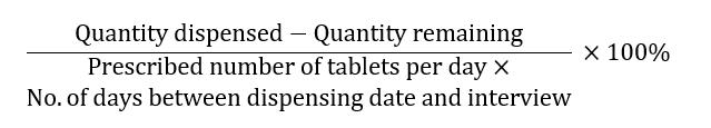 Percentages of dose taken =